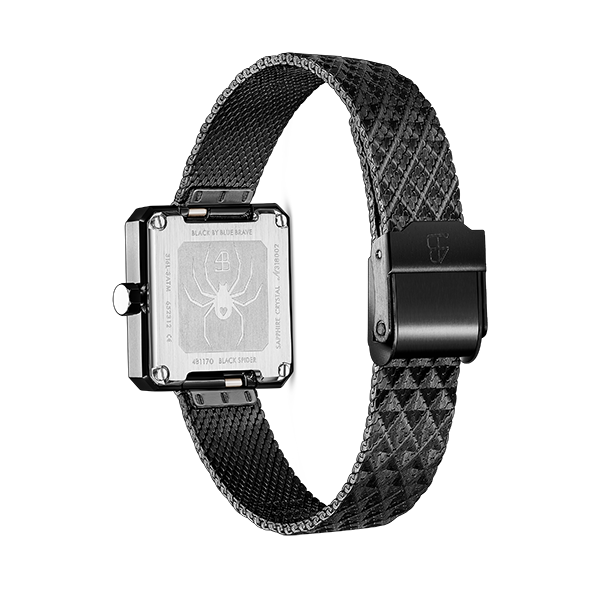 The Spider's leg shaped hour design, seamlessly blends with the spider dial, Matching Web inspirated design meshband, Embodiment of unique design.