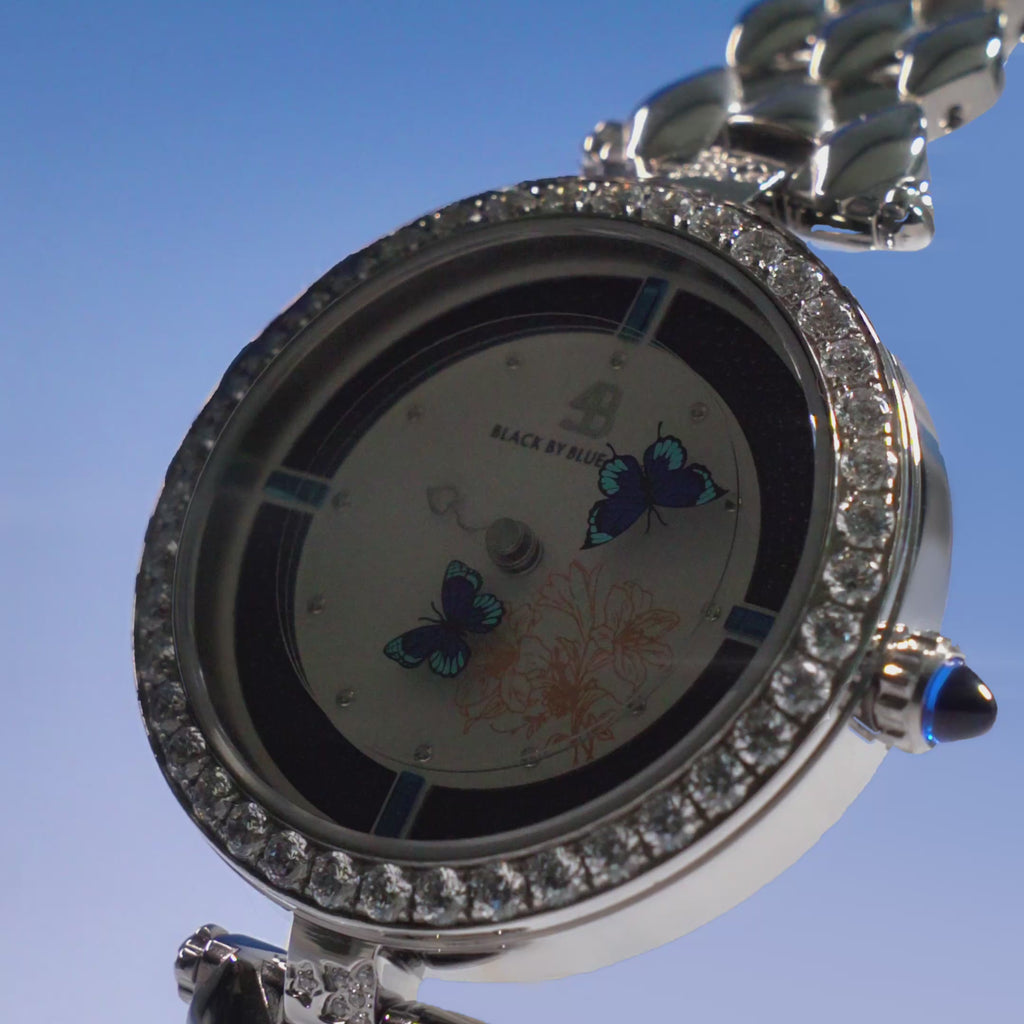 A gracefully rotating butterfly represents the second hand. It flutters continuously, symbolizing the fleeting yet beautiful moments of time.