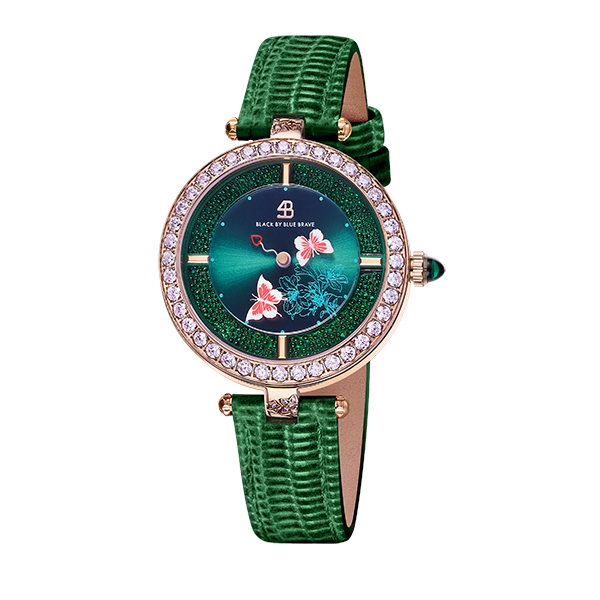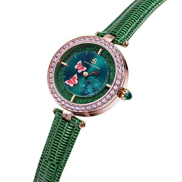 A gracefully rotating butterfly represents the second hand. It flutters continuously, symbolizing the fleeting yet beautiful moments of time.
